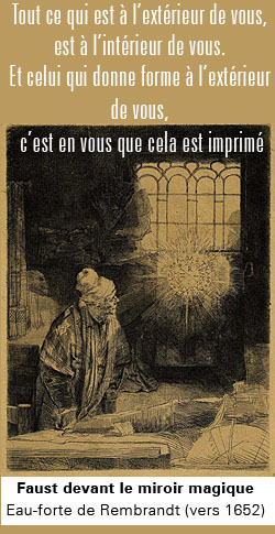 «Tout ce qui est à l’extérieur de vous, est à l’intérieur de vous. Et celui qui donne forme à ce qui est extérieur de vous, c’est en vous que cela est imprimé».
